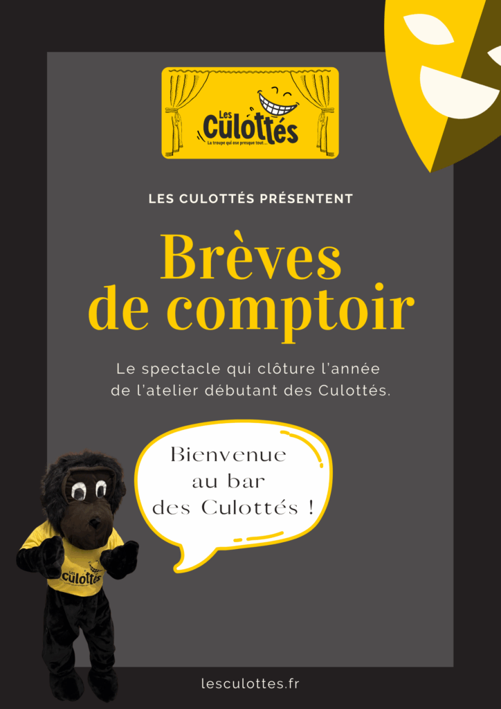 07.02.2026 Spectacle de l'AtelierSpectacle écrit par les comédiens de l'atelier des Culottés 2024/2025 et mis en scène par Frédéric Briard. Pour réserver Merci à Stéphanie Girard et Romain Guédon pour les photos ! Forest Tours CampingInterdum exercitation penatibus, praesentium facilisi accusamus fermentum, sagittis.